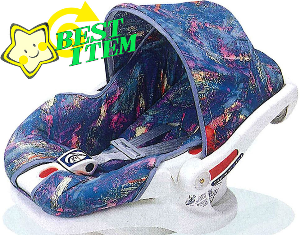 最もご利用者様が多いベビーシートです。後ろ向き着座で、背もたれ約45度にて後部座席に取付けします。 台座をシートベルトで固定しておけば、 キャリー部は簡単に取り外して赤ちゃんを乗せたまま移動できます。赤ちゃんのベルトは、V字になった肩ベルトの間に頭をくぐらせて、股で留めるタイプ。ベルト長さの調節がしやすい3点ベルト方式。