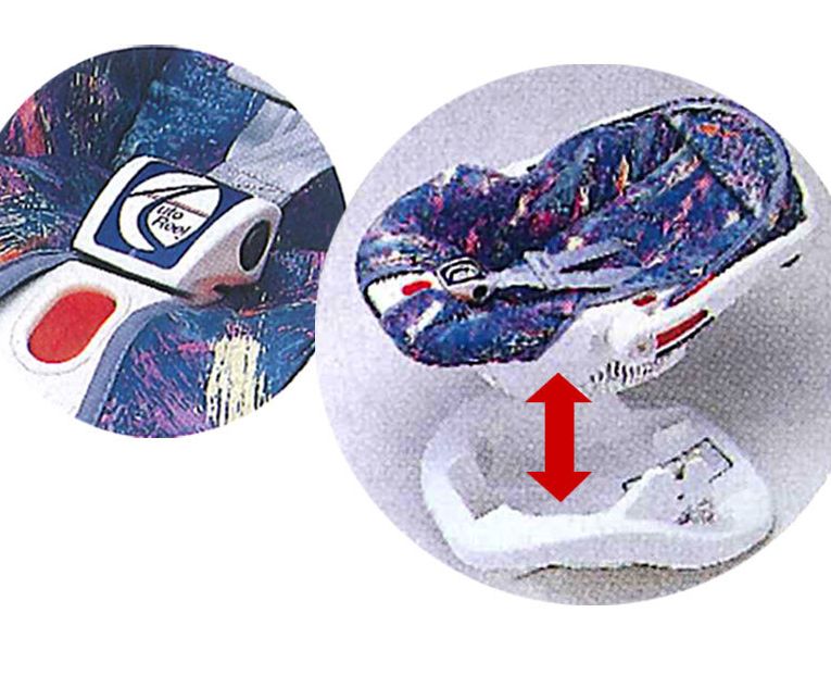 後ろ向き着座で、背もたれ約45度にて後部座席に取付けします。 台座をシートベルトで固定しておけば、 キャリー部は簡単に取り外して赤ちゃんを乗せたまま移動できます。上記スーパーキャリーと形や固定方法は一緒ですが、ViViの赤ちゃんのベルトは、3点式ではなく、股・腰・肩の5点式タイプ。手軽さで選ぶなら3点式、安全性重視なら5点式を選びましょう。