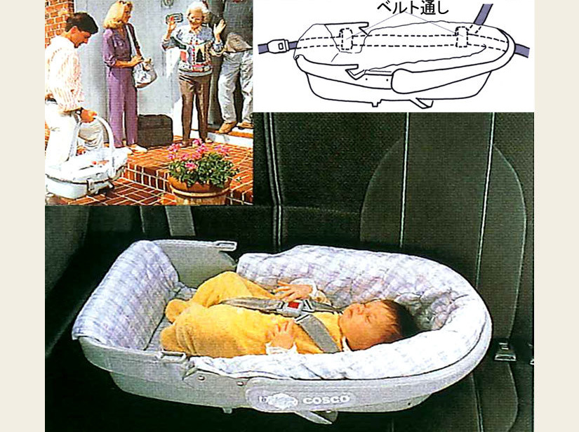 新生児期から4ヶ月頃まで。 車のシートに並行に設置しますので、2人分の座席確保が必要です。