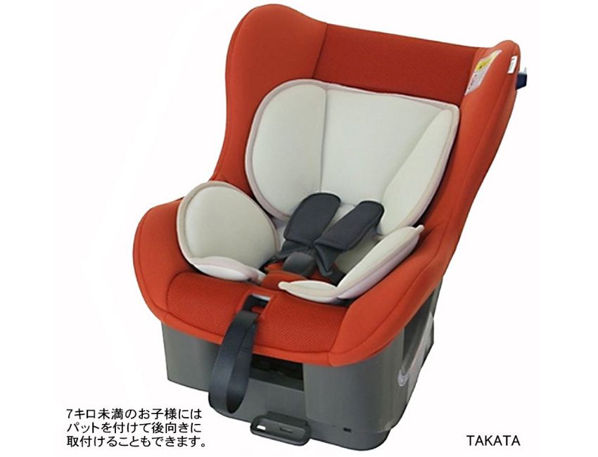 新生児から4歳頃まで対応可能なチャイルドシートです。1歳近くまでは後ろ向きで取り付けします。以降は前向きで取付け。ヘッドレスト付きで、首の座らない赤ちゃんでも安心です。