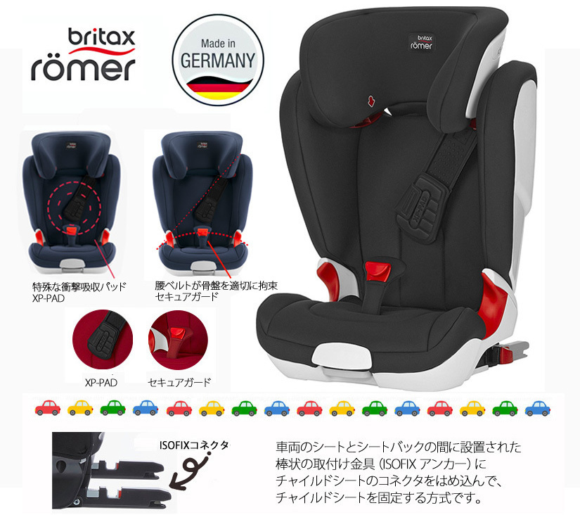 3歳、体重15キロ以上から使用可能な学童用ジュニアシートです。身長を目安にする場合は100センチ以上。今までの幼児用チャイルドシートと違って、シート自体にハーネスはなく、車のシートベルトを直接お子さんに掛けるようになります。座席への固定が必要なくなりますので、取り付けの心配や座席への適合の心配はありません。3点式のベルトがあれば使用可能です。
