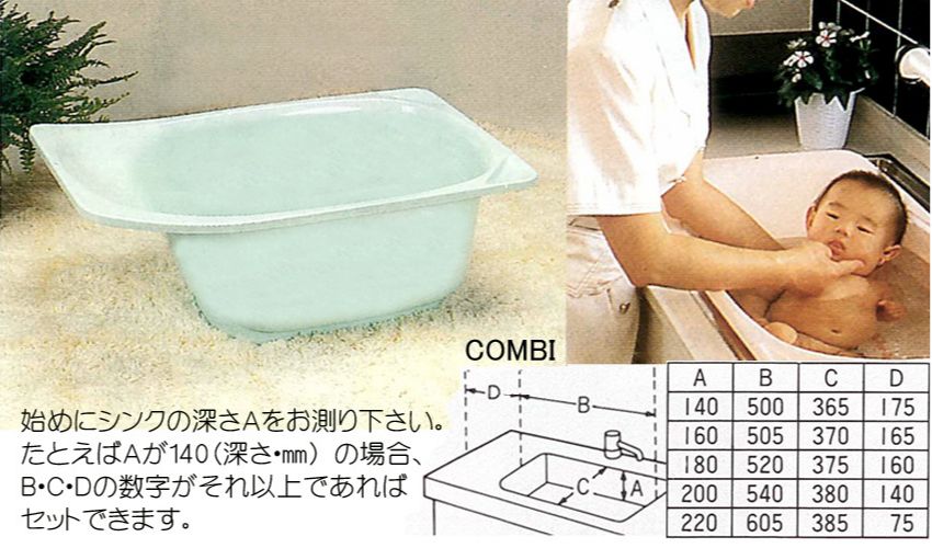 キッチンのシンクで使えるタイプ。立ったまま沐浴させられるので、背中や腰に負担がかかりません。 排水栓が付いて、お湯捨てもラクラク。